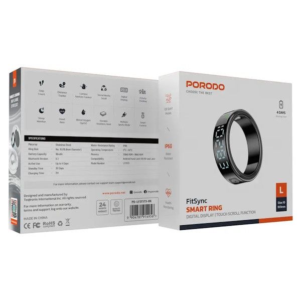 مقاومت در برابر آب با استاندارد IP68 نیز باعث شده این حلقه در برابر شرایط روزمره، شستوشوی دست و فعالیتهای مختلف کاملاً مقاوم باشد. اگر بهدنبال ترکیبی از تکنولوژی، دوام و طراحی مدرن هستید، حلقه هوشمند Porodo FitSync انتخابی ایدهآل برای شما خواهد بود 💪💎